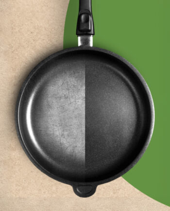 Każda z patelni pokryta jest naszą autorską powłoką Lotan®, która umożliwia smażenie bez użycia tłuszczu, chroni przed przypalaniem i przywieraniem jedzenia do powierzchni oraz ułatwia mycie – wystarczy przetrzeć patelnię ręcznikiem papierowym lub użyć niewielkiej ilości wody z dodatkiem detergentu.