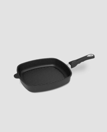 Diamentowy wzór – dostępny jedynie w ofercie AMT – sprawi, że potrawy będą wyglądać wyjątkowo i apetycznie. Dzięki wersji z odczepianą rączką, patelnia grillowa BBQ może być używana również w piekarniku.
